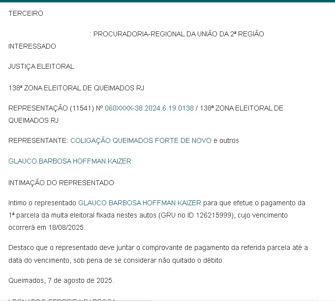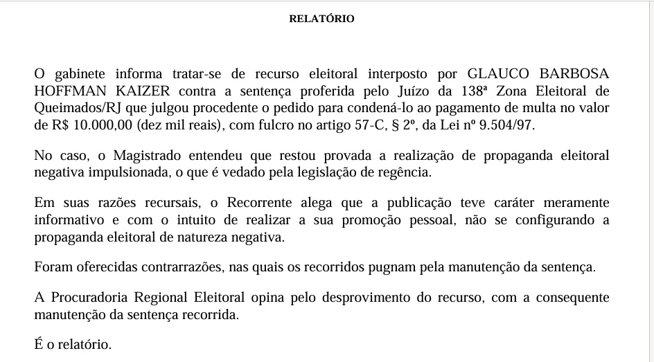 O processo, 0601100-38.2024.6.19.0138 é cheio de desdobramentos e não se resume apenas na conclusão publicada na página, que por vez ignorou nessa última publicação as condenações apontadas contra o prefeito Glauco Kaizer, o processo segue ativo.